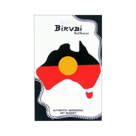 This magnet features a Map of Australia in the Aboriginal Flag colours, a great way to show pride in the land. It's officially licensed by Harold Thomas, the designer of the flag and is a quality flexible magnet. The magnets in stock are remaining stock from Birubi Art.