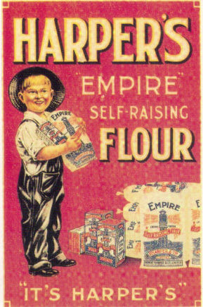 This advertising poster is for Harper's Empire Self-Raising Flour. It features a very sweet picture of a child holding on to a packet of flour and would make a delightfully rustic piece of decor for the home or office.