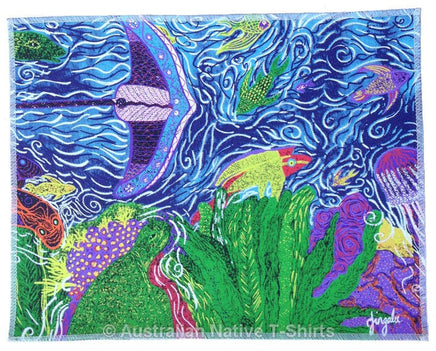 A delightful Aboriginal art underwater design, this screen-printed panel is called On The Reef by an artist named Jingalu from NSW, Australia. This is a smaller print, about the size of an A4 page and reproduces the vibrant artwork wonderfully. This is an Australian made product and a lovely gift. This Panel Print Measures: 30.5cm x 24cm (12 Inch x 9.4 Inch).
