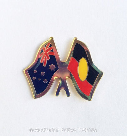 Wear the proud colours of the Australian Aboriginal Flag crossed with the traditional Australian Flag with this badge. It's a combination of cast metal with enamel infill and is a, officially licensed quality product - a great way to show your pride!